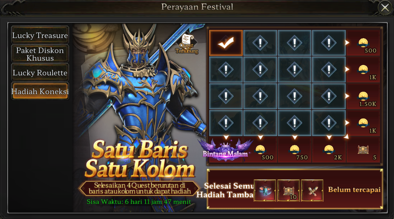 Selesaikan 4 quest berturut-turut dalam baris atau kolom di papan event untuk mengklaim hadiah sesuai posisi tersebut!