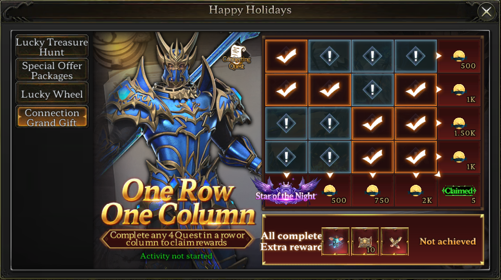 ทำภารกิจใด ๆ ครบ 4 ช่องในแนวตั้งหรือแนวนอนบนกระดานกิจกรรม เพื่อรับรางวัลที่ระบุไว้