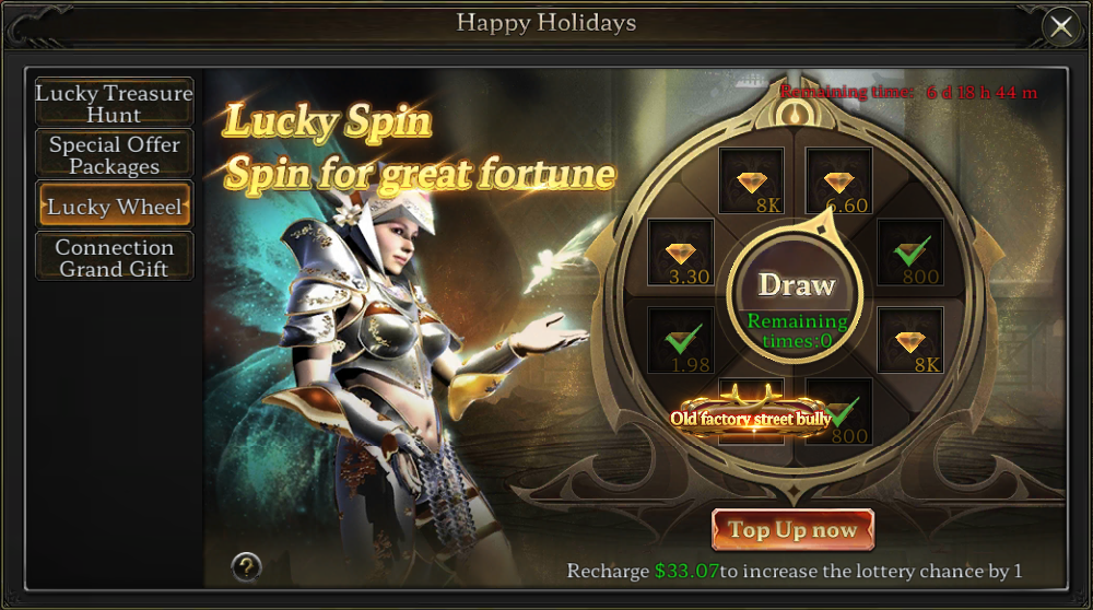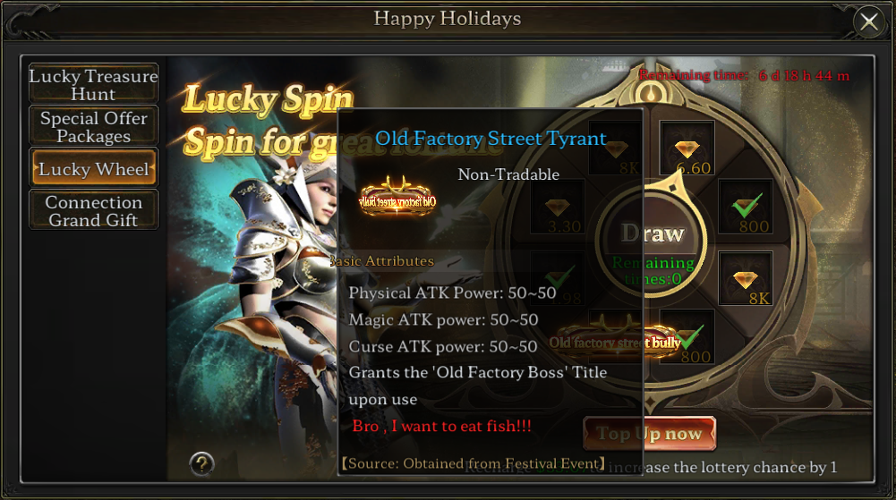 กิจกรรม Lucky Wheel เปิดแล้ว! หมุนวงล้อเพื่อลุ้นรางวัลจากการเติมเงิน และทดสอบโชคของคุณเพื่อรับ Bound Diamonds และคำนำหน้าชื่อสุดพิเศษ “Old Factory Street Tyrant”